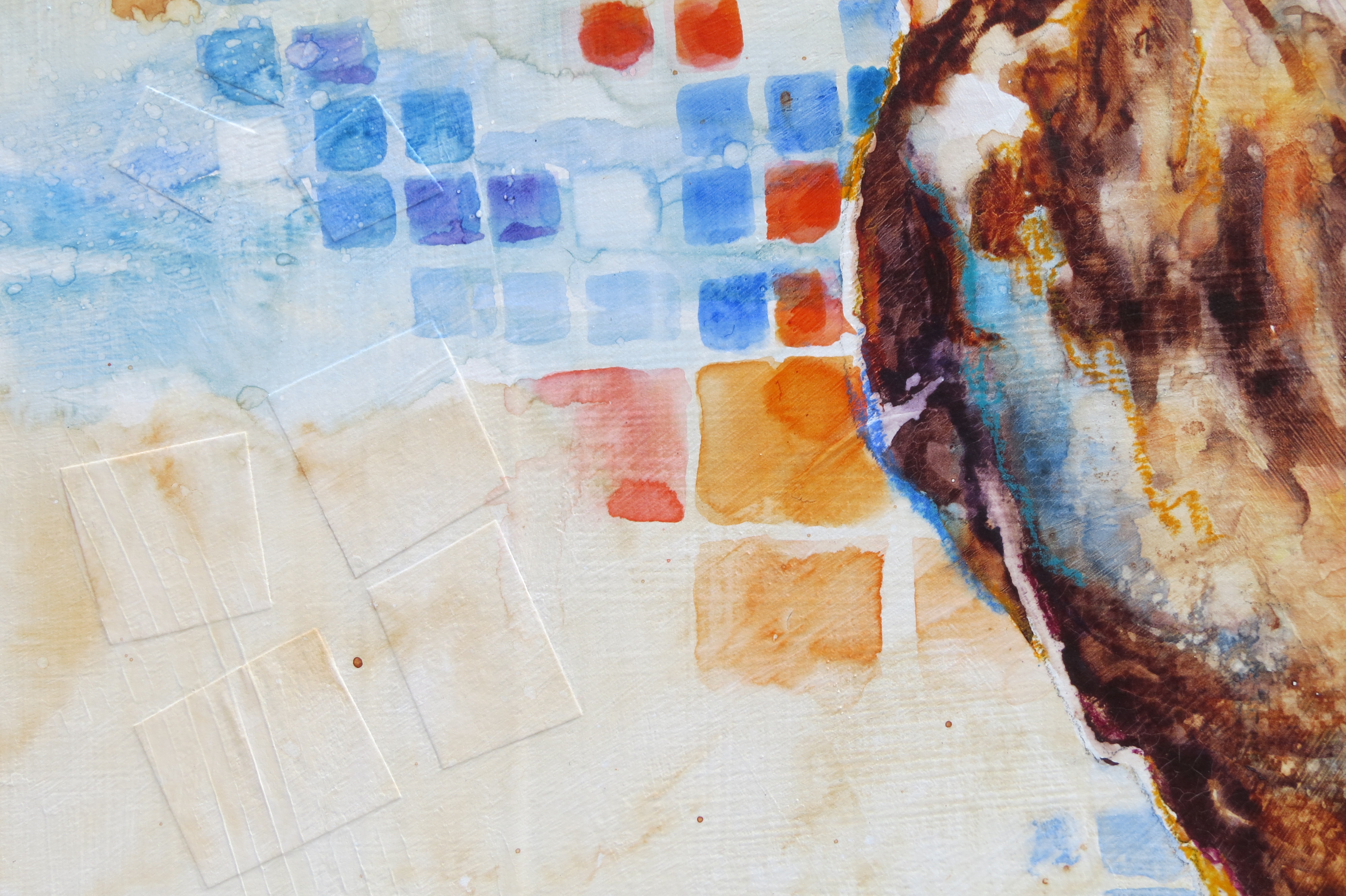 I decided to add squares to the background in a scattered diagonal line from the top LH corner of the painting to the lower RH corner.