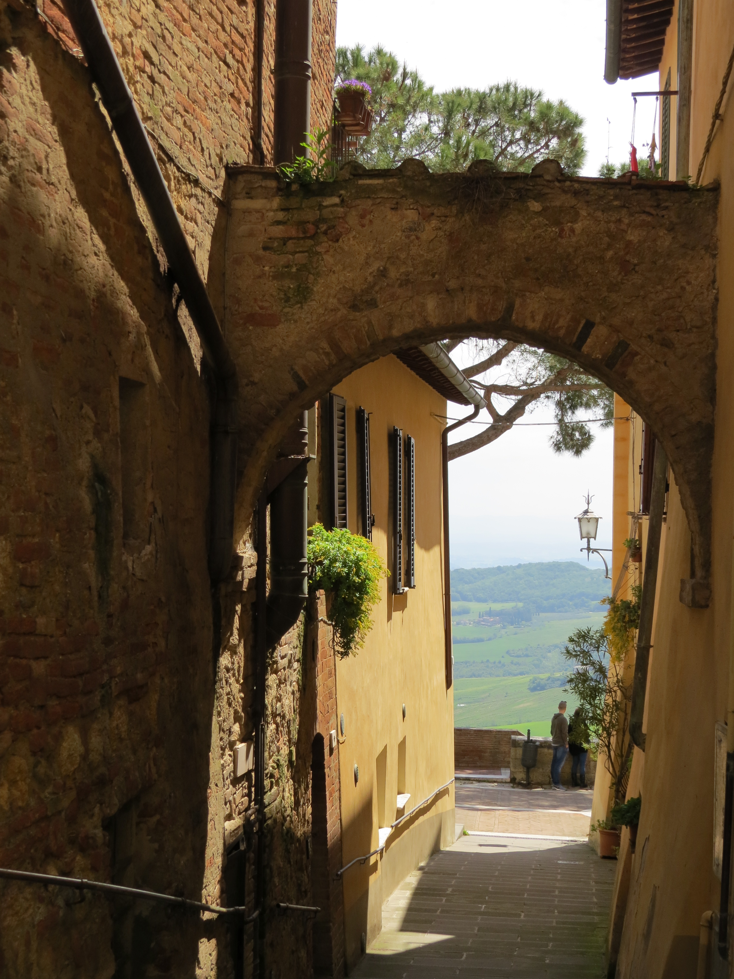 Anyway, as we wound our way up through the town to take a look at the view as well as a garden near the top, I passed by a gorgeous alley, flooded in yellow Tuscan light, with views to the valley below. Breathtaking.