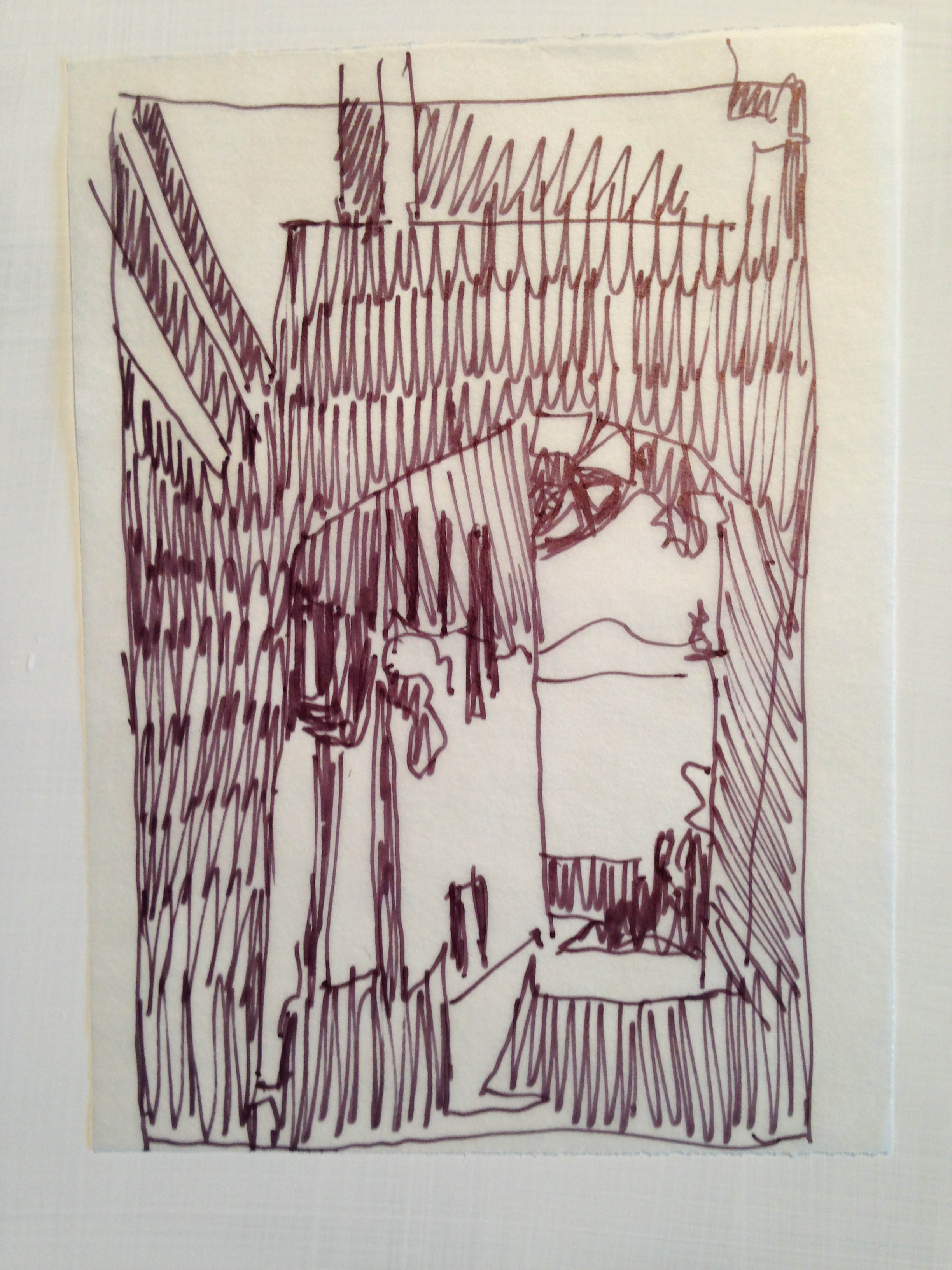 With the composition focused on the 1/3 RH side of the canvas, here is my thumbnail sketch. Doing a small value sketch always help me decide on placement of shadows and forms within the painting.