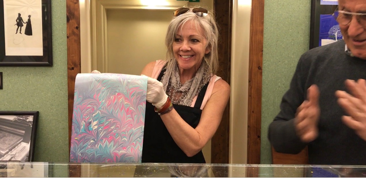 At Il Papiro, Gina had set up a tour to observe the company’s process in marblizing paper.