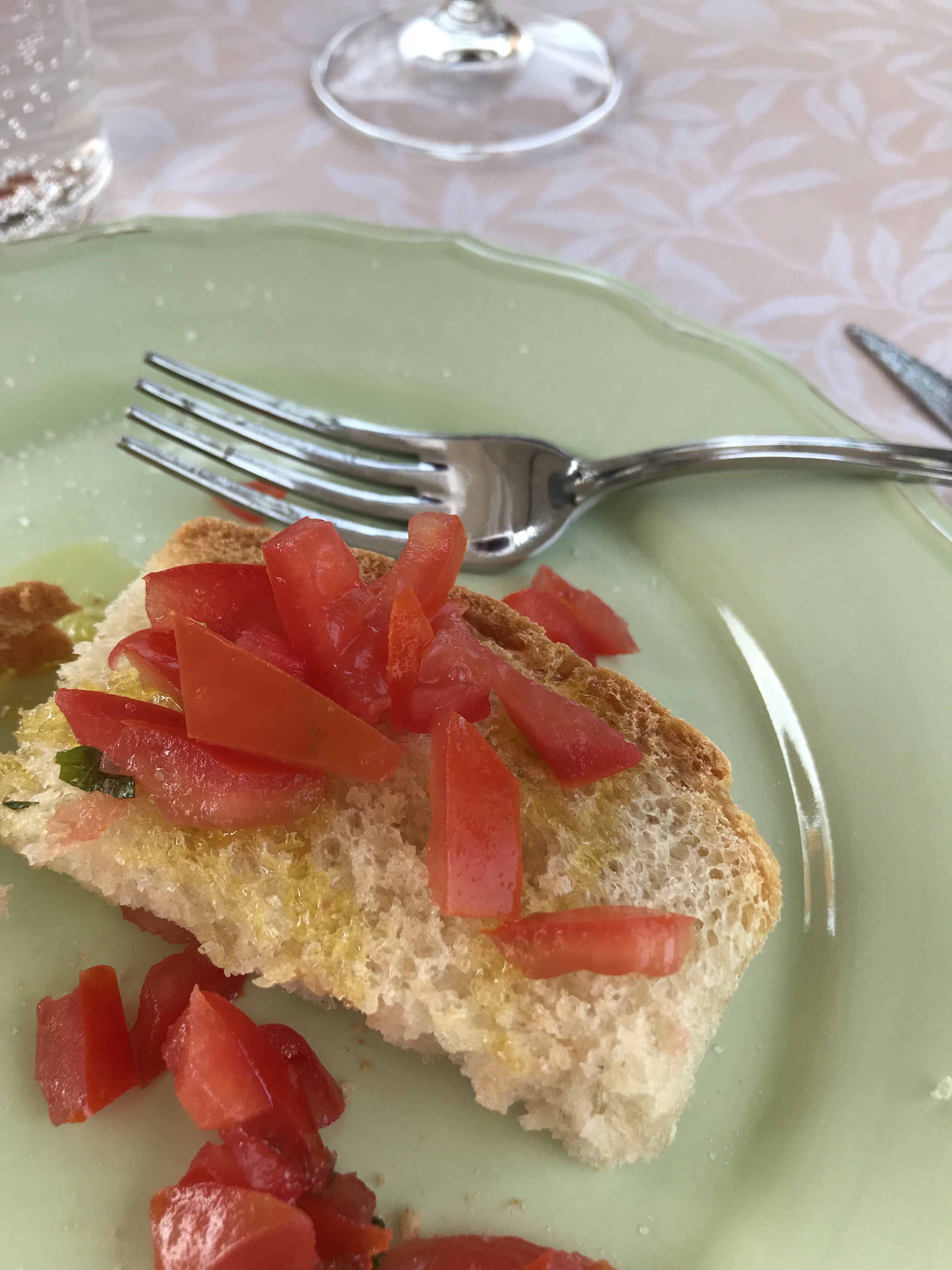 Yum. Made with her incredibly delicious olive oil, salt, and tomatoes with basil, it was such a treat! She also served us a dessert wine, with her yummy chocolate cake and cantucci. So good.