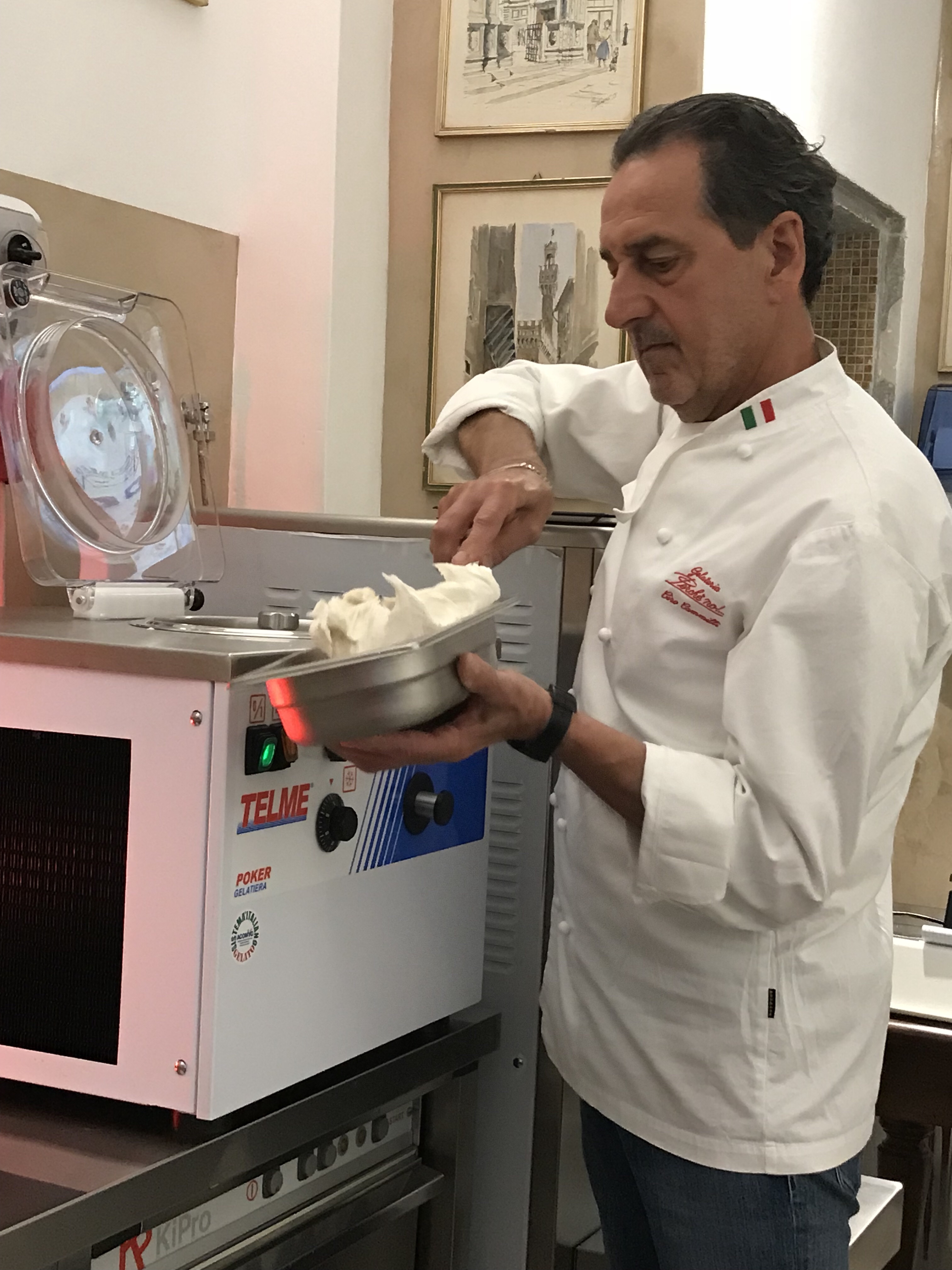 In Florence, Gina had set up a special lesson on how to make authentic gelato with the famous gelato maker of Gelateria Perche No!