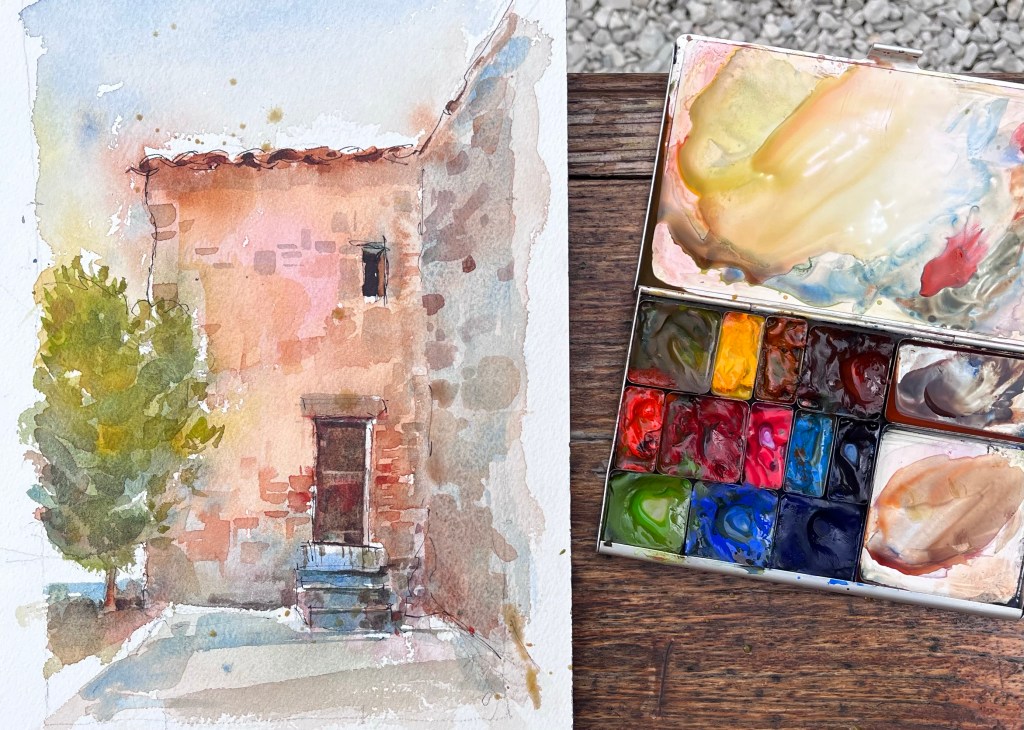 As this was the final working day of the workshop, students were welcome to work on either the above stone wall, finish up any projects they had going, or begin new paintings.